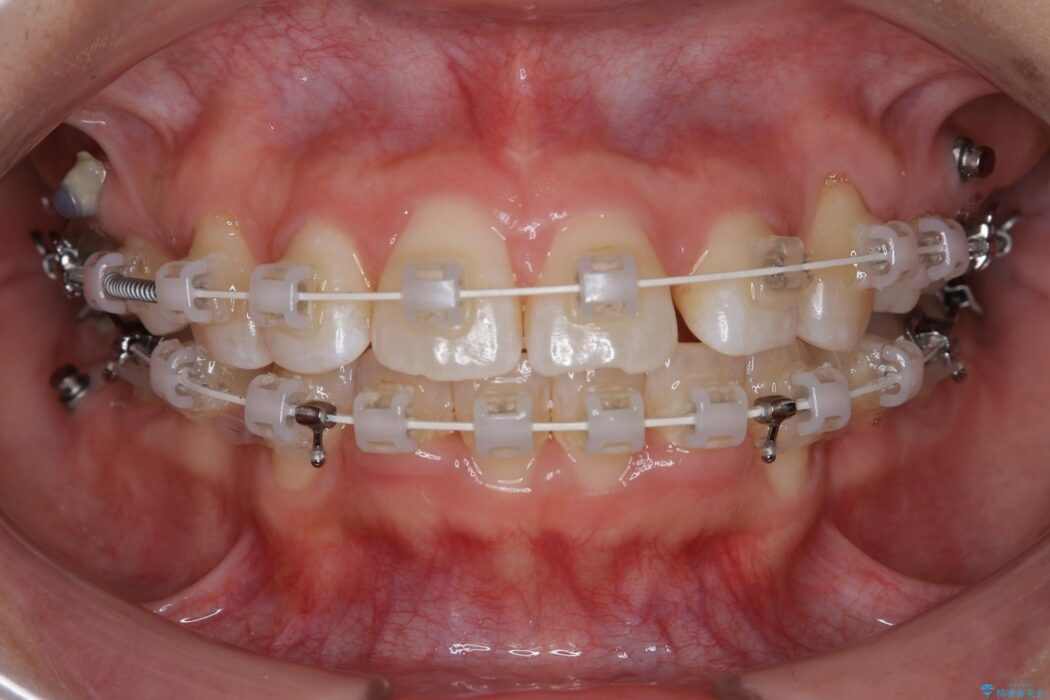 抜歯する事で歯の移動量が大きいことから、表側ワイヤー装置にて治療を行うこととしました。
