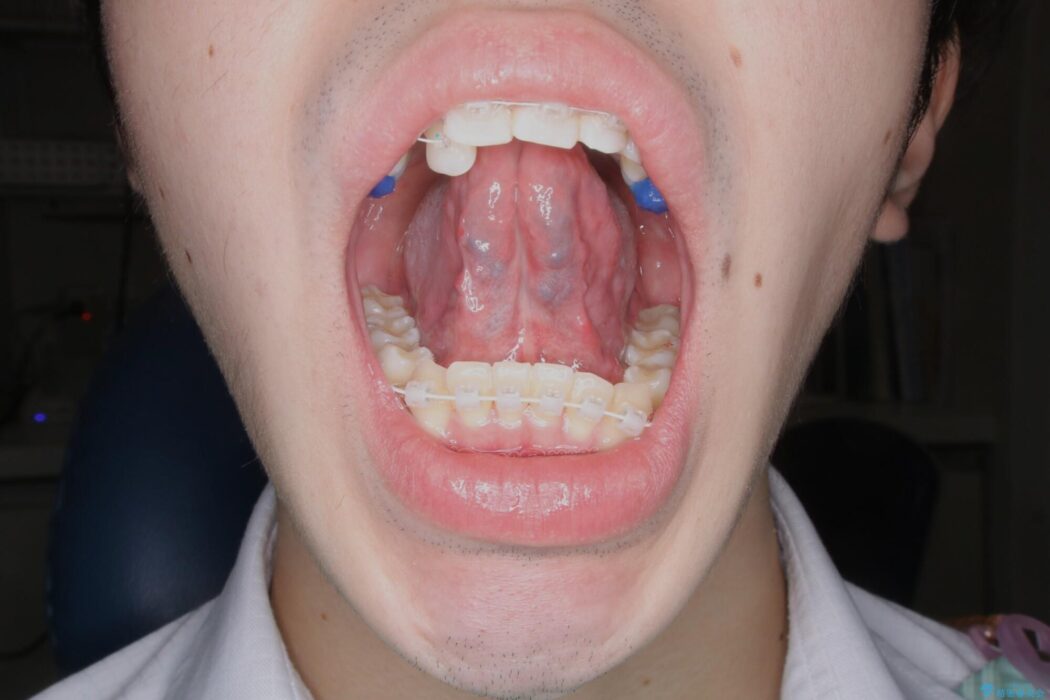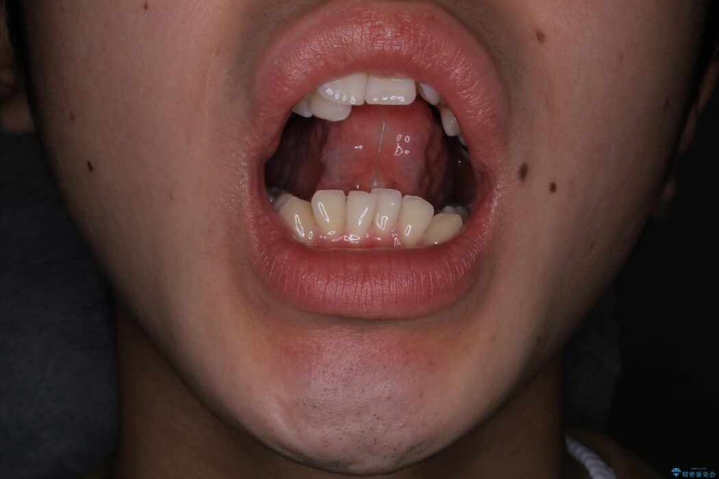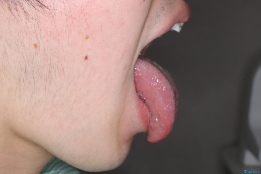 矯正歯科治療を開始する前に舌小帯(舌の裏側についている線維性のスジ)切除を行い、滑舌の改善を計画しました。