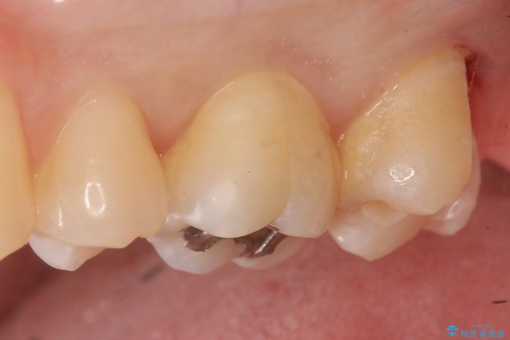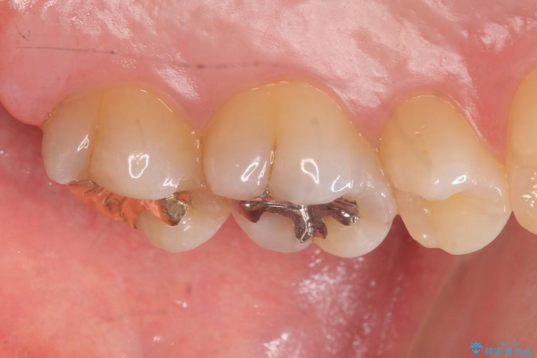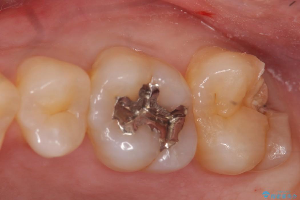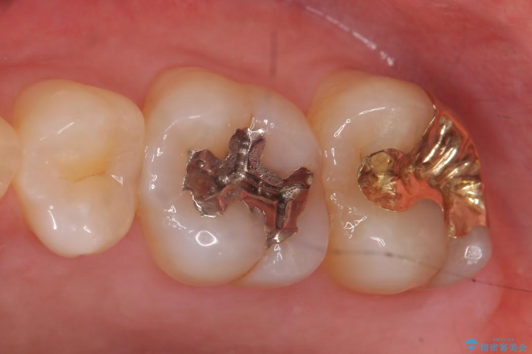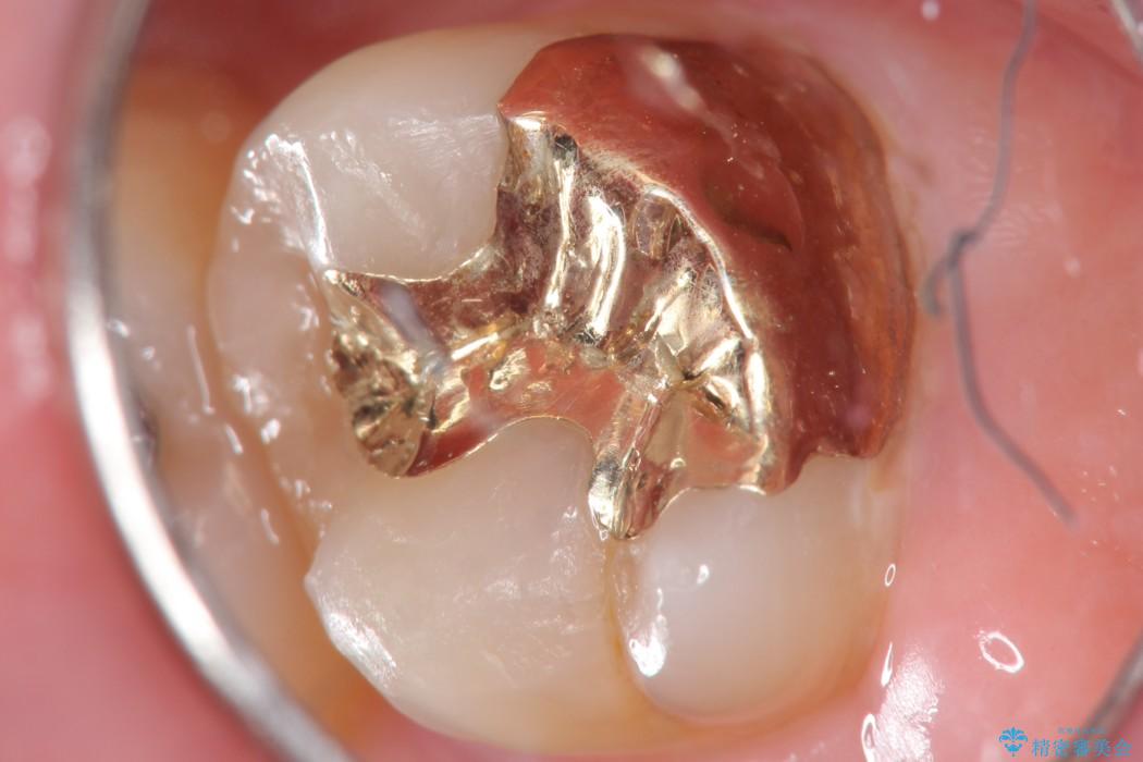 今回は一番奥の歯という位置と、噛み合わせ、清掃状態を加味して適合の高く長持ちするゴールドインレーにて治療することとしました。