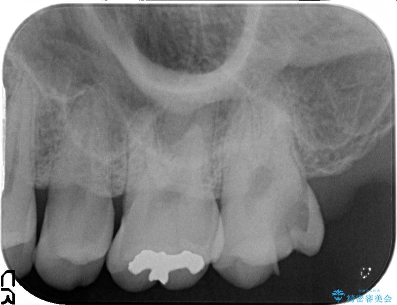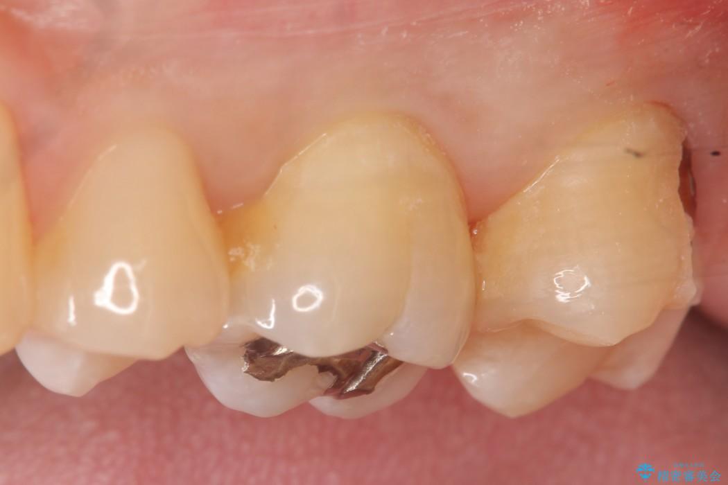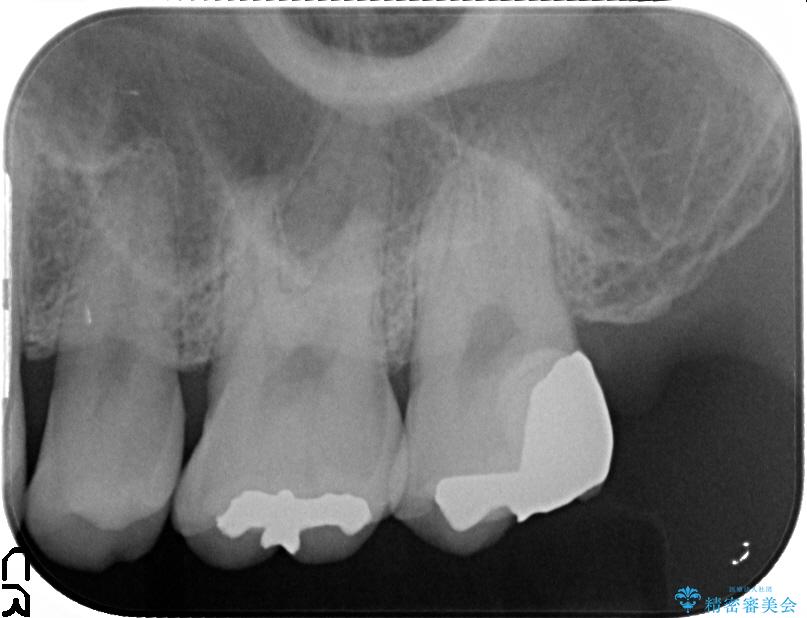 上顎左の一番奥の歯が深い虫歯になって脆くなり、更にその状態に強く噛みしめたわけではない通常の咬合力が加わったことで歯が欠けてしまっていました。