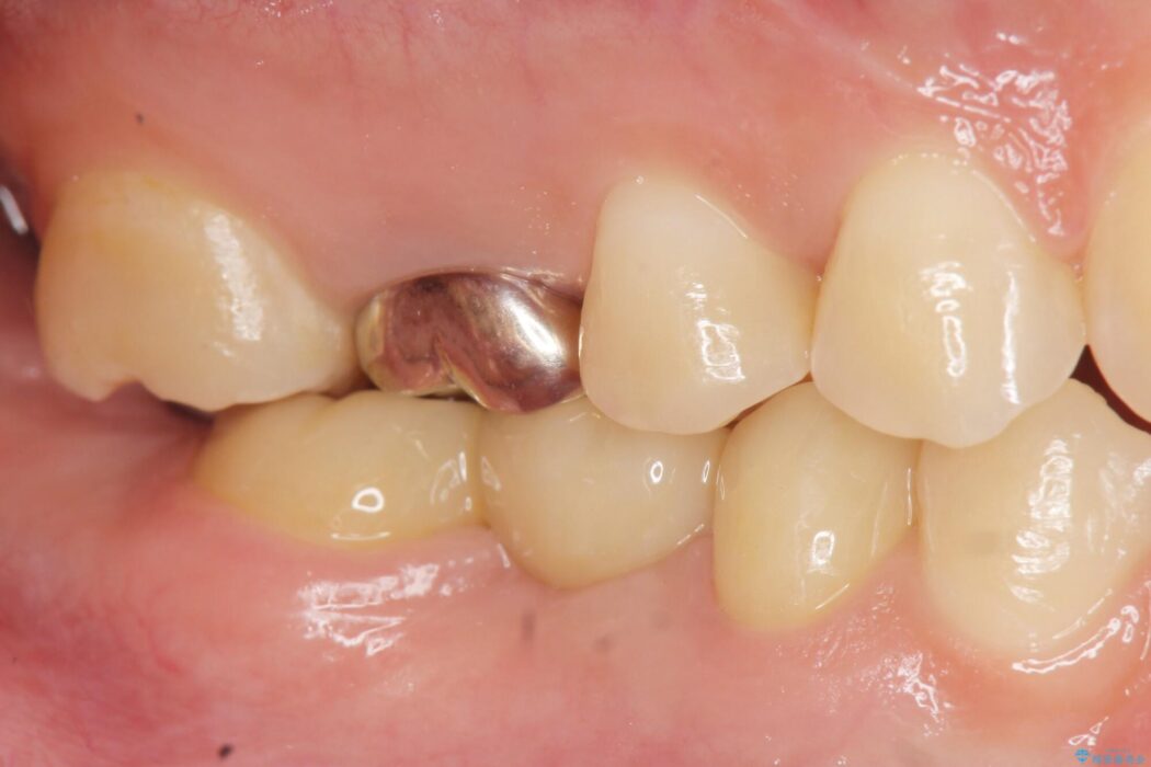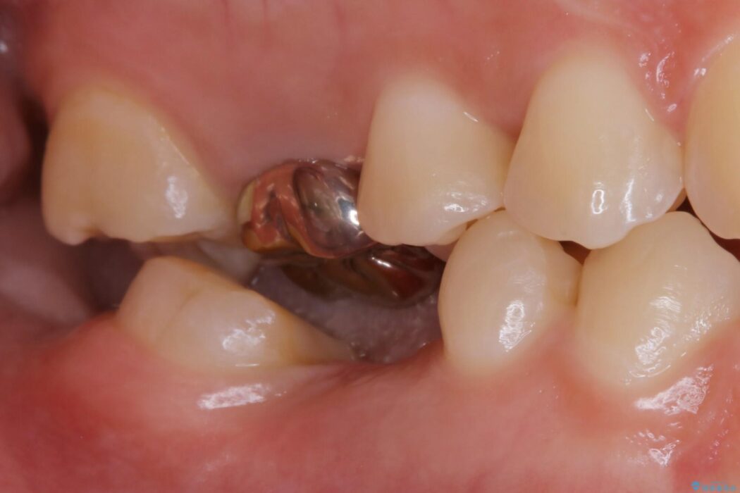 診査した結果、欠損した状態で長期間放置していたことが原因で最高峰の奥歯が欠けた部分に向かって傾斜してしまっていました。