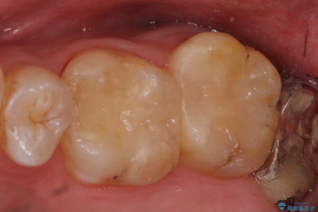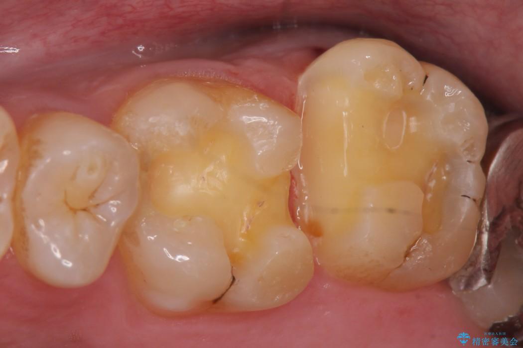 古い詰め物を外し、白く審美性の高いセラミックインレーにて再治療を行うこととしました。