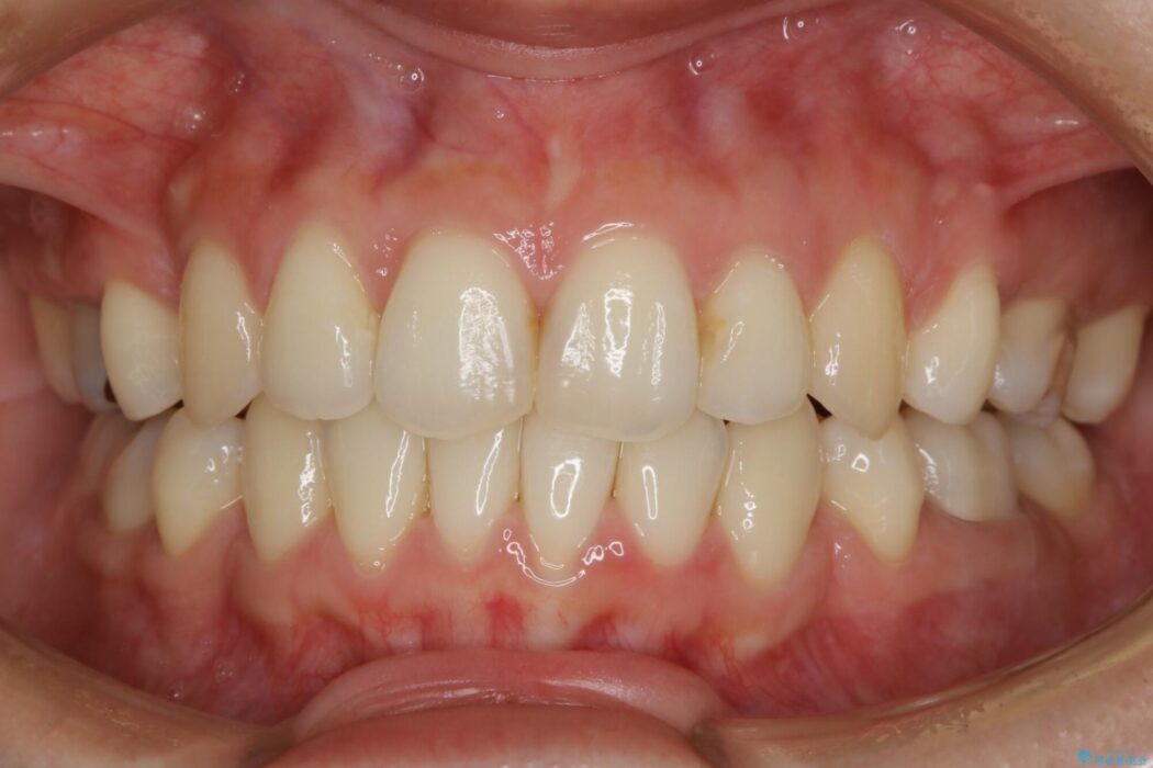 笑った時に見えるガタついていた見栄えが改善されて歯列弓もきれいな形に整い、患者様にはご満足いただけました。