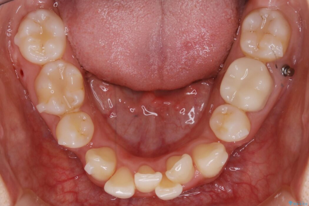 加えて患者様の顎の大きさに対する歯の数が多いことが叢生の原因になっていることから、抜歯した上で歯列を整えるほうが最終的な仕上がりとして良い結果になると判断しました。