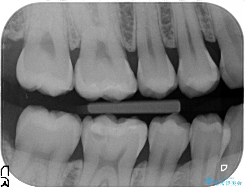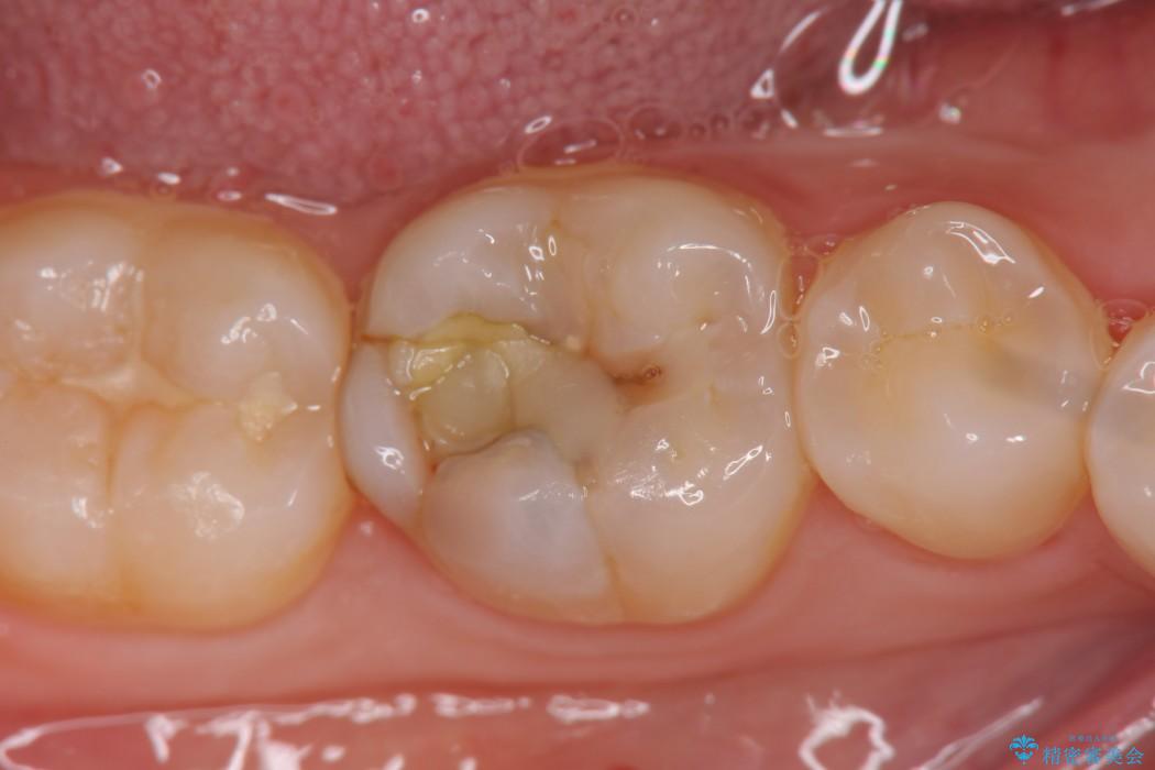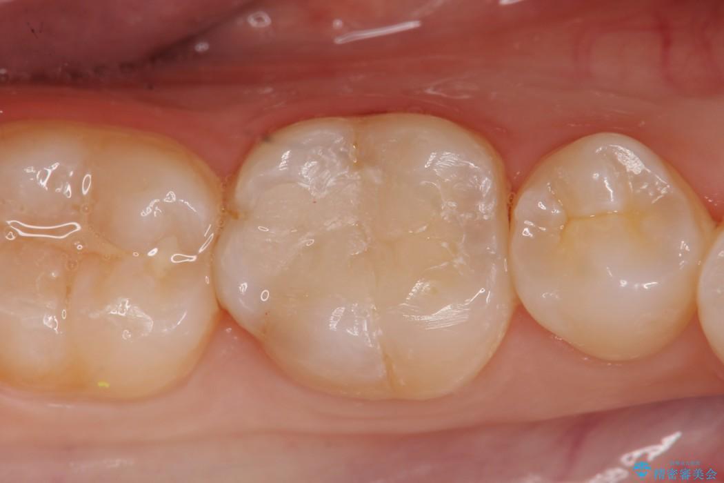 診査をした結果、顎左右の前から6番目の歯に深い虫歯があったため、詰め物(インレー)タイプで修復していく(e-max プレスインレー)での治療を行いました。