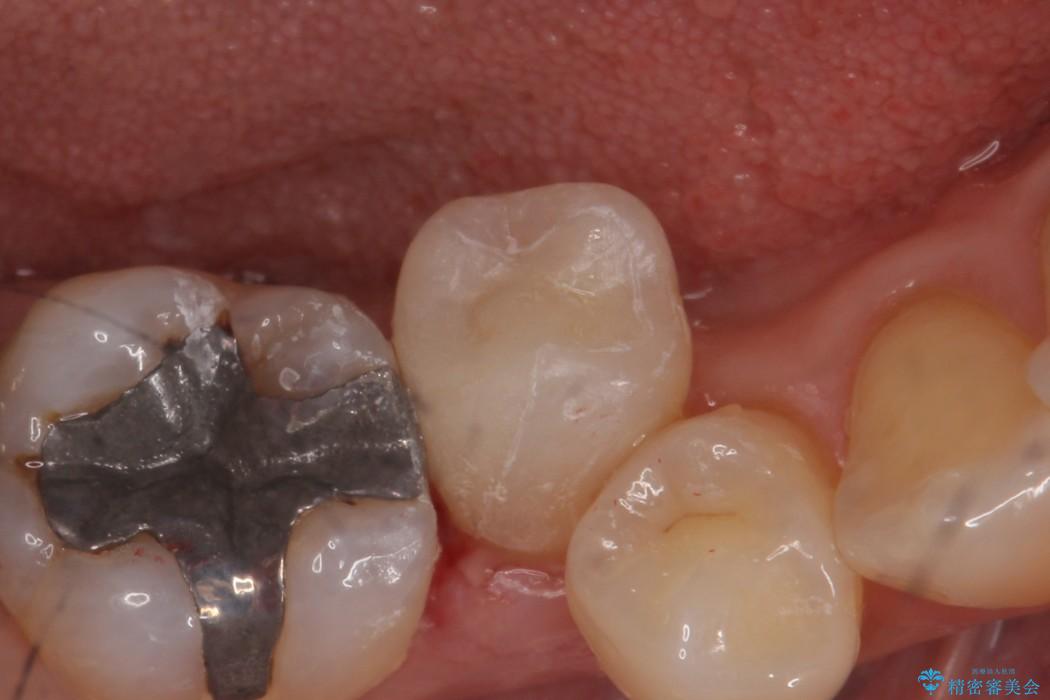 虫歯部分を丁寧に取り除き、見た目の問題から患者様のご希望もあり、変性の少ないセラミックインレーを用いて機能と見た目の回復をする計画としました。