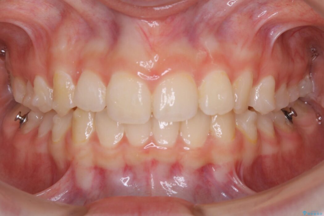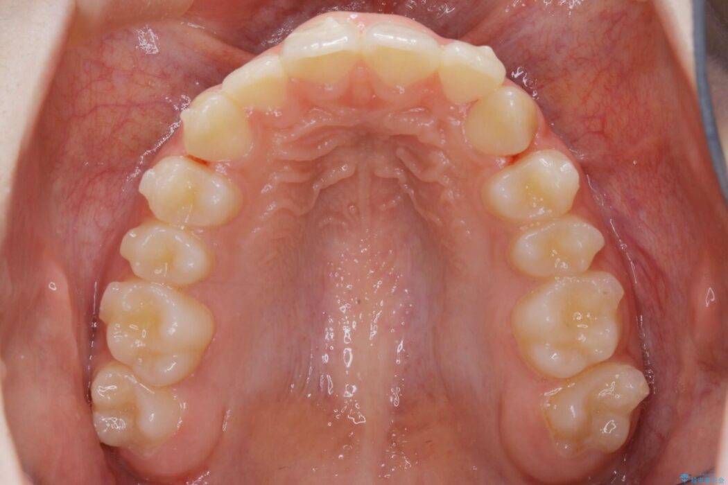 患者様の顔や顎の骨が比較的小さく、それ故に前歯に叢生が生じ狭窄歯列弓になってしまっている状態でした。