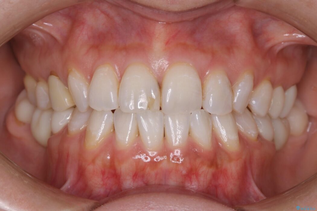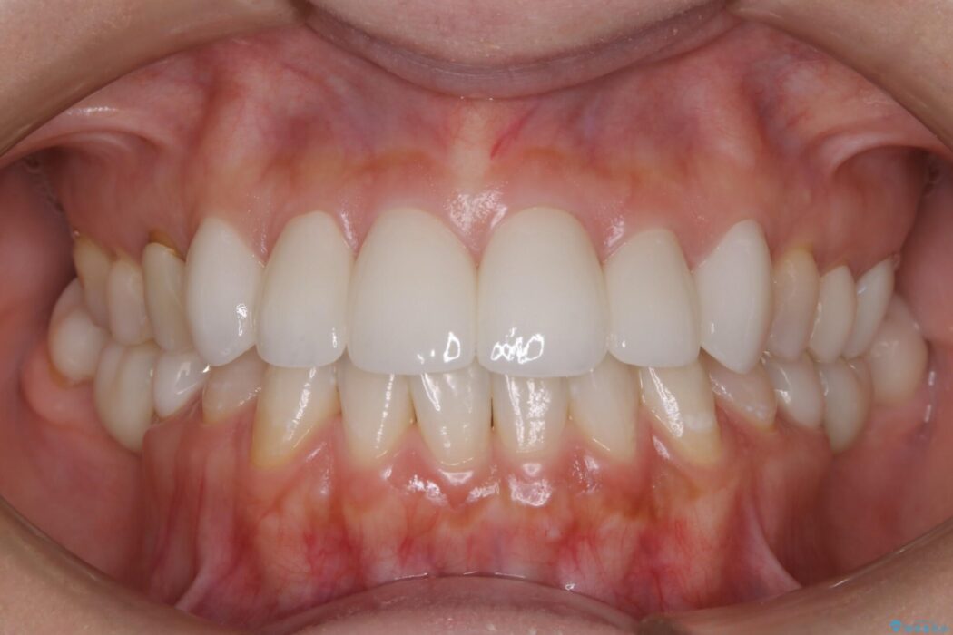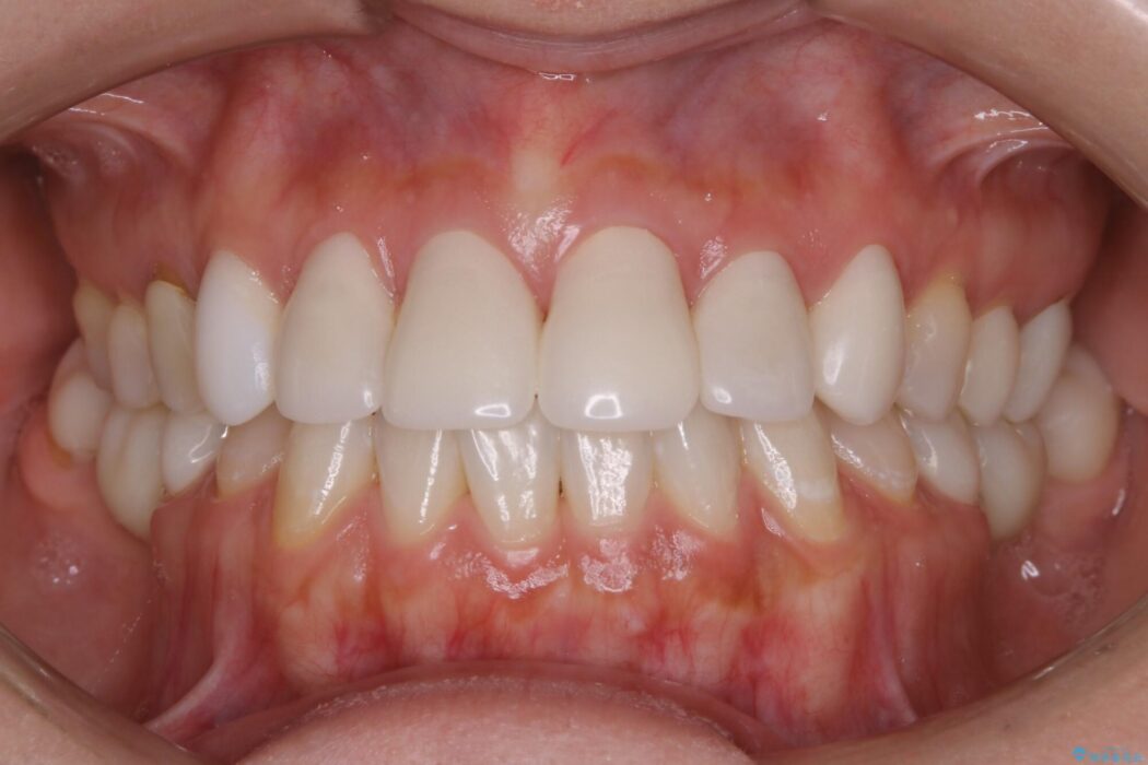 よって今回のケースでは患者様とご相談をした上で、かぶせ物の治療を選択。前歯の形態や噛み合わせ改善治療へのアプローチを図りました。