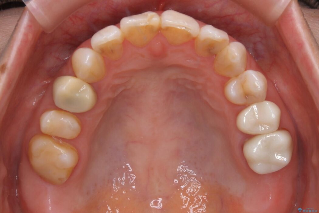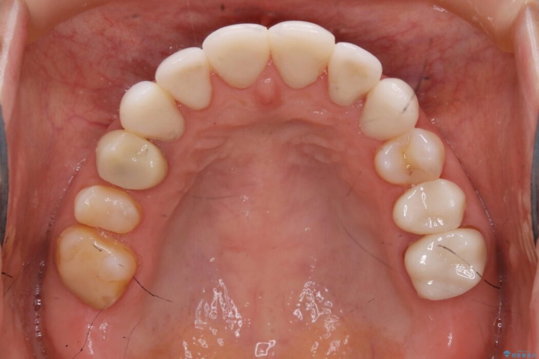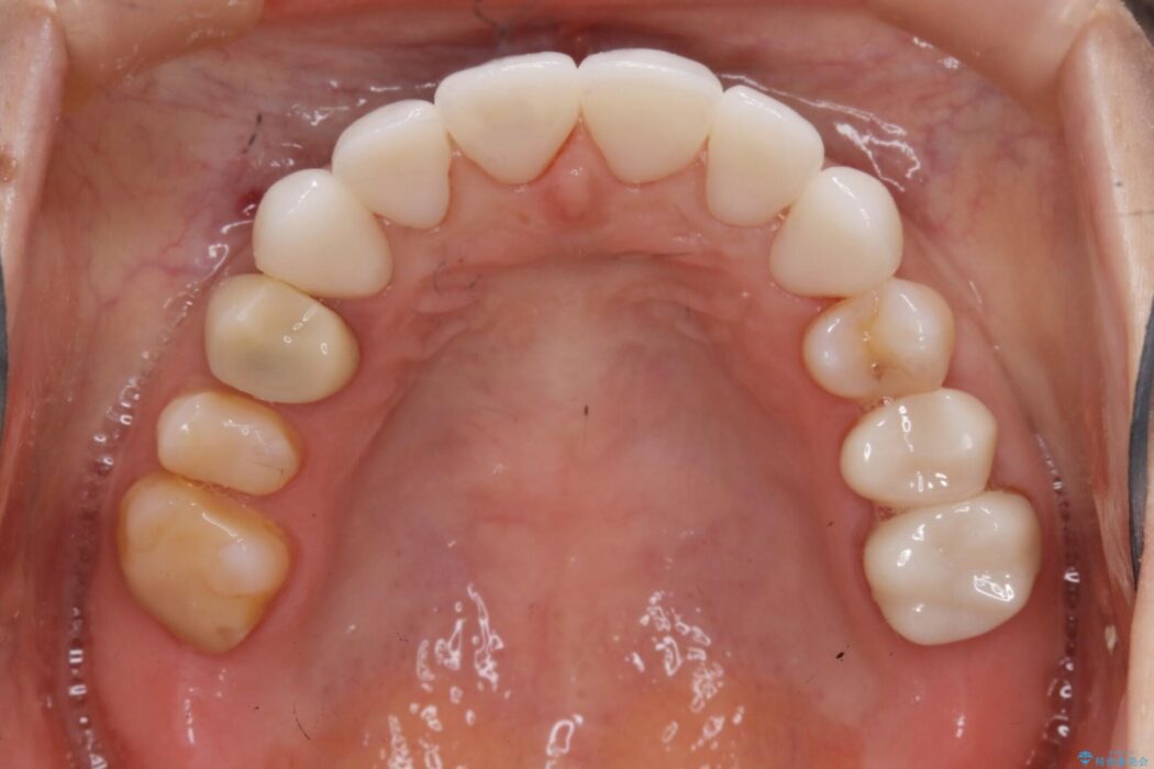 主訴である前歯部分以外の治療歴も多くブリッジ治療の既往もあったため、反対咬合の改善をするには治療規模、期間などが大きくなってしまうことが予測できました。