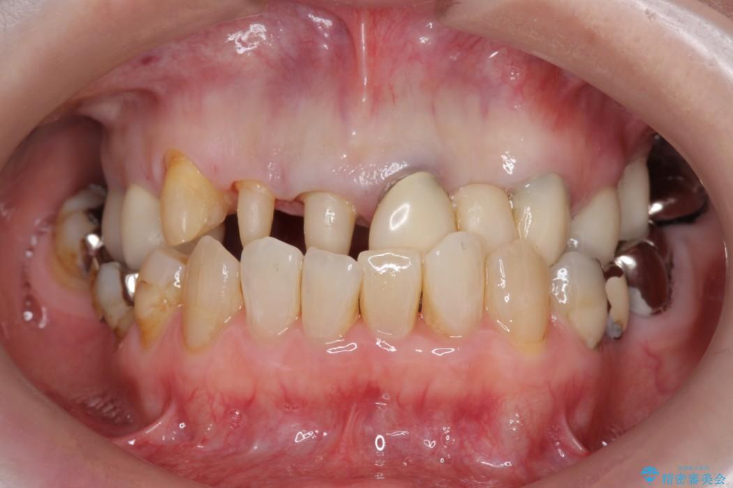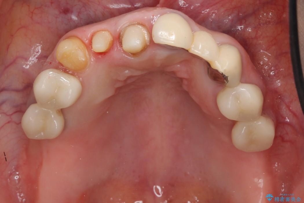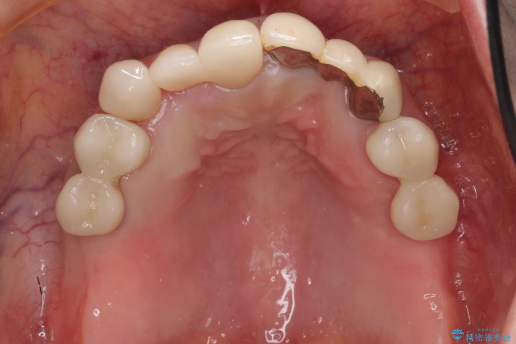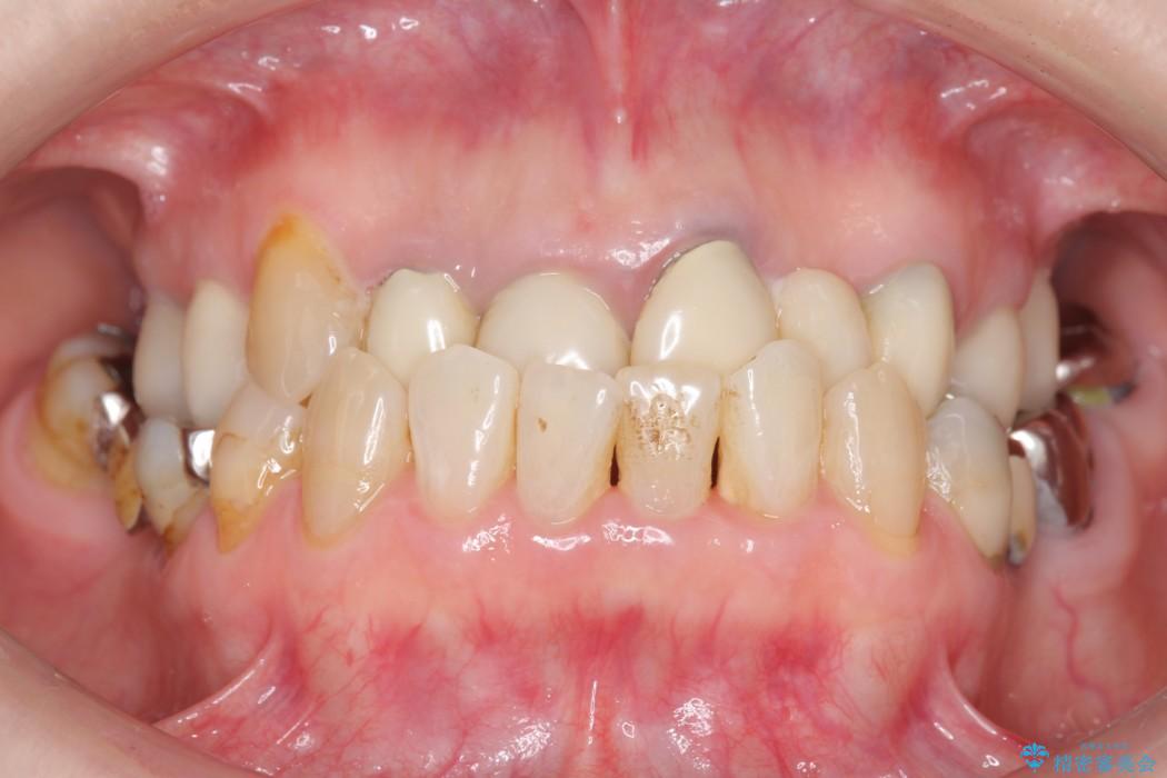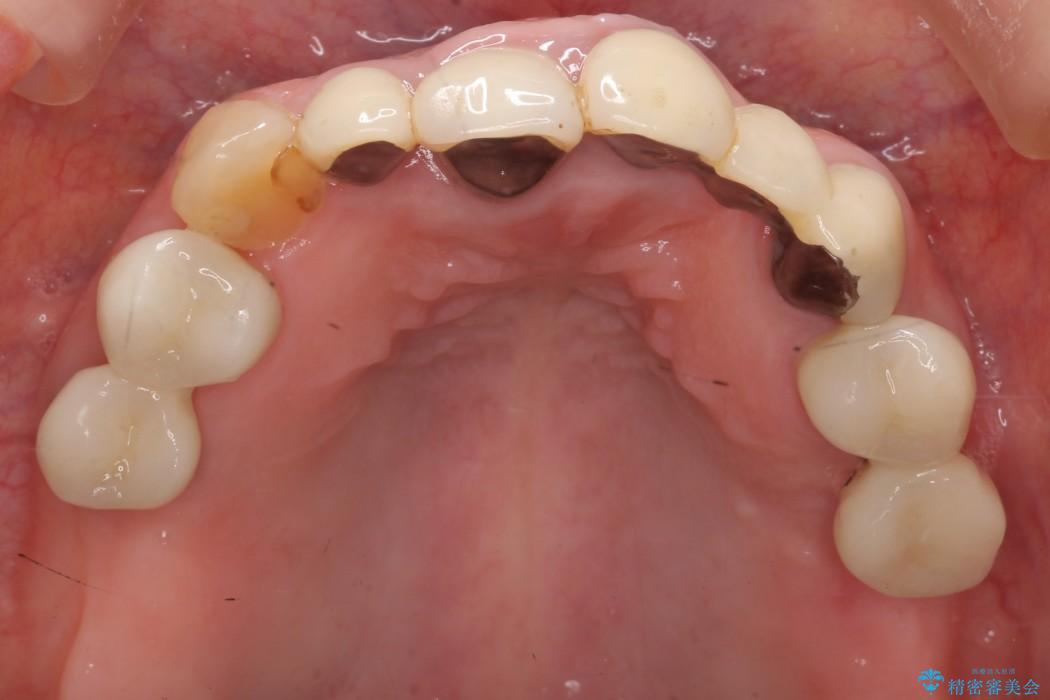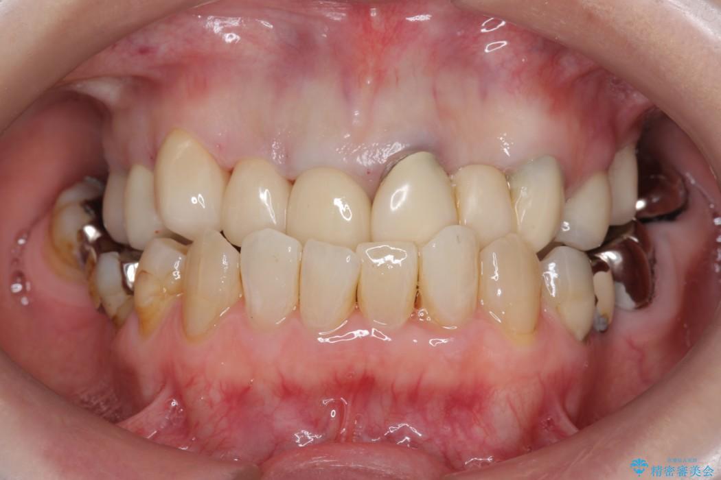 前歯のかぶせ物に関しましては、内面が金属で覆われているため歯茎にその色が透けて見えるという審美的な問題と、かぶせ物と歯の境界が不適合であるという問題がありました。