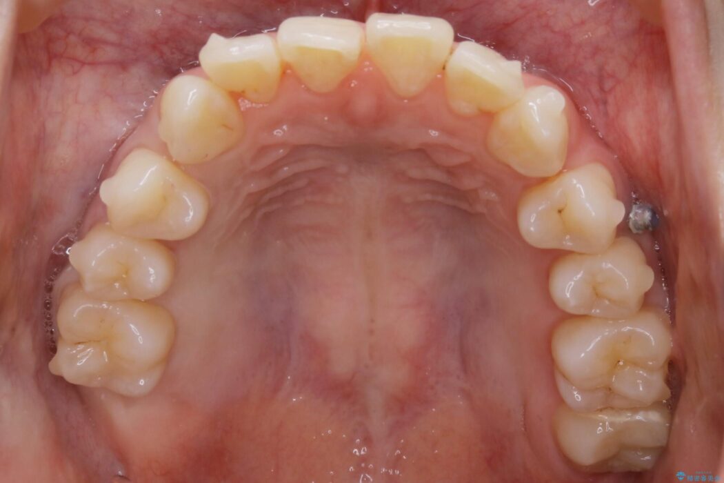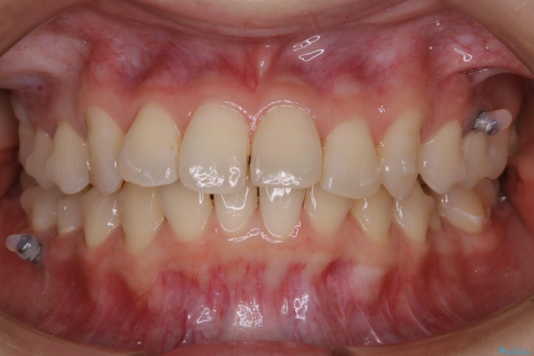 ガタつきの度合いから抜歯は不要と判断しましたので、マイクロインプラントを用いて歯全体を遠心移動させていくことでねじれや噛み合わせのズレを改善していく計画を立てました。