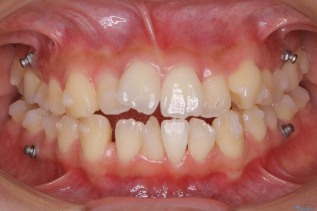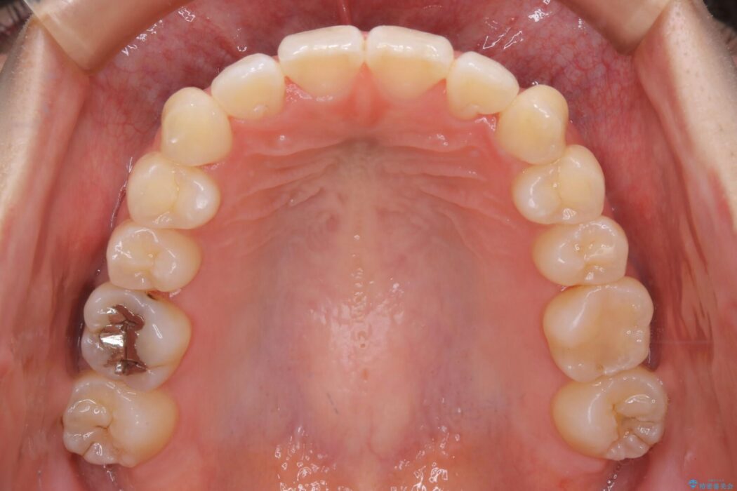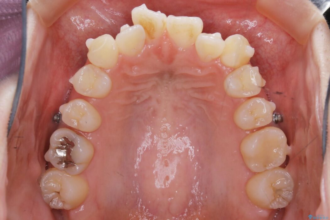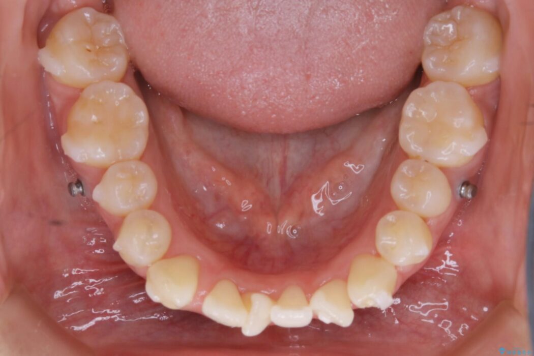 本症例では奥歯から順に移動させるため前歯の変化を感じるには時間が掛かりましたが、インビザライン装置とマイクロインプラントを併用することで健康な歯を抜歯することなく歯列をきれいに整えることができました。