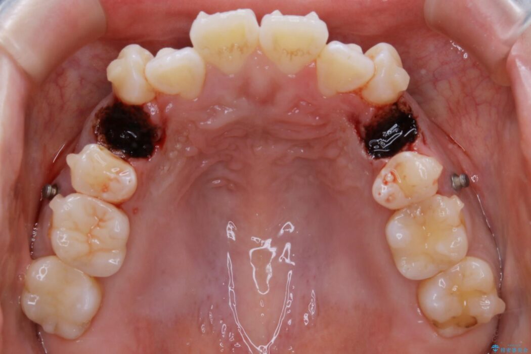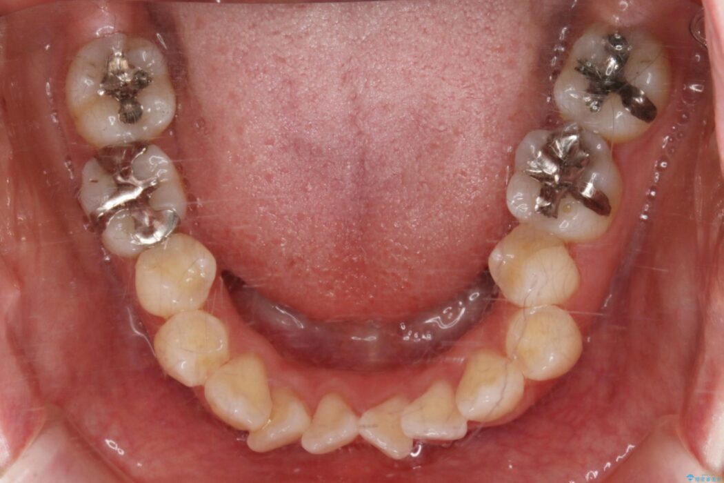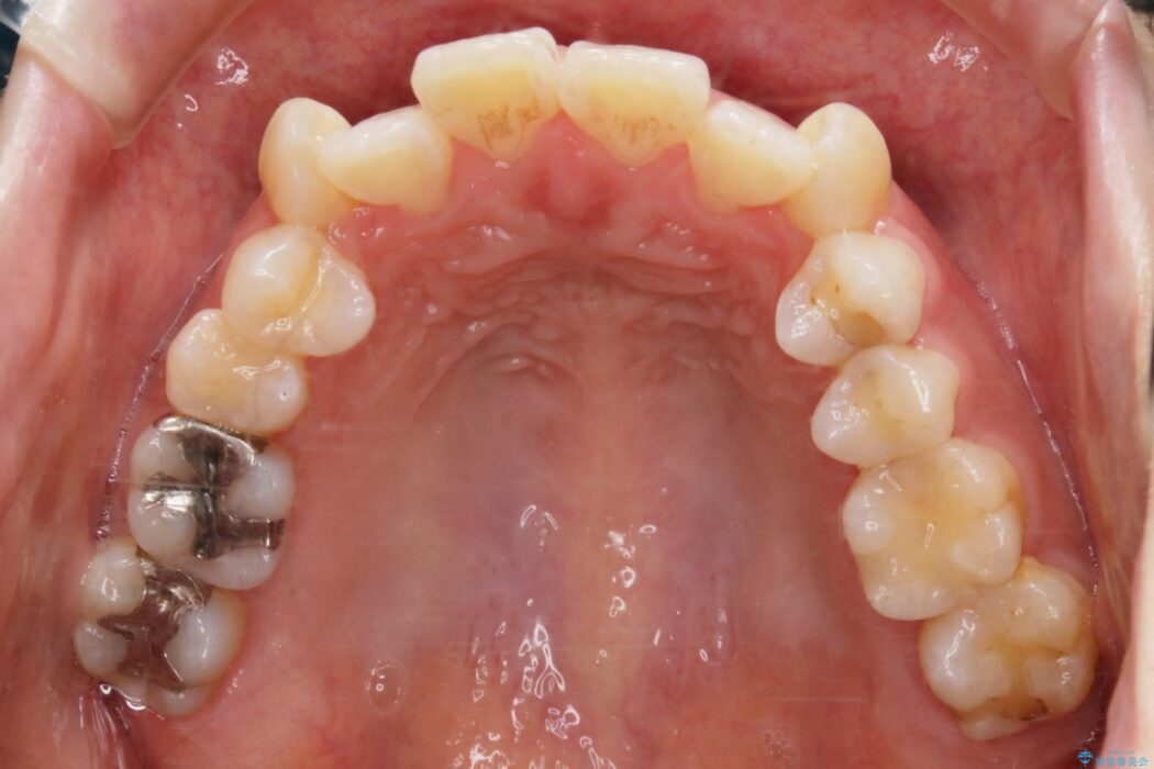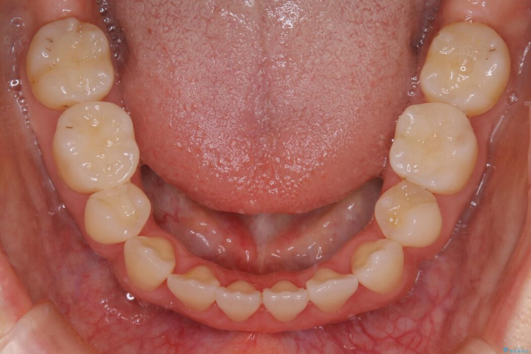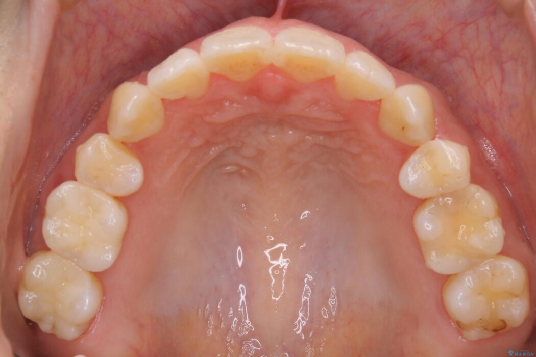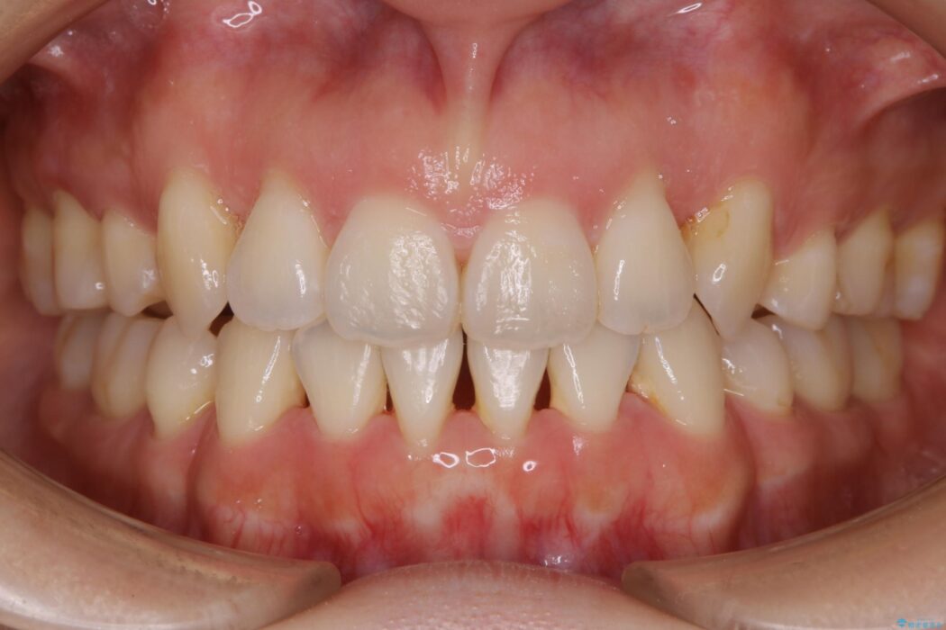 お仕事柄、目立たない矯正装置をご希望されたため、今回はインビザラインと抜歯を組み合わせた治療で対応します。