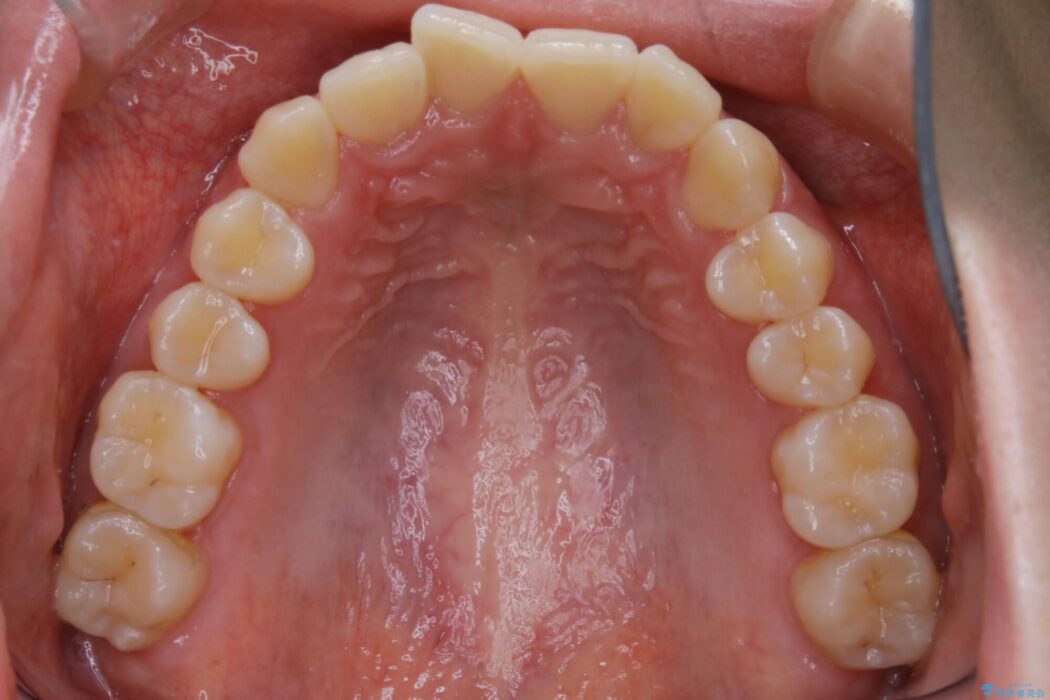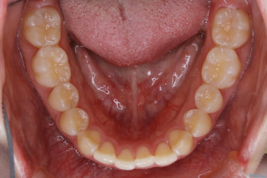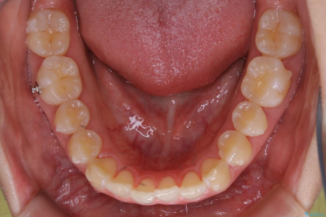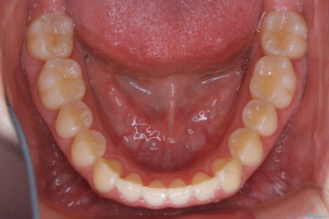 幸い下顎の歯列はがたつきが少なかったため、下顎を基準とし上下ともに正しい噛み合わせと歯列を獲得していく計画としました。